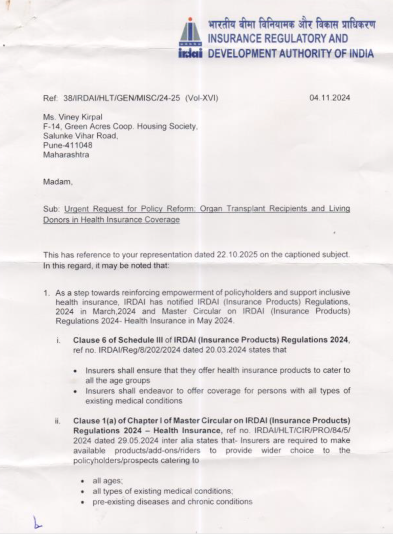 If you’re facing heart, lung, liver, or kidney issues, get medical insurance as early as possible. Most policies won’t cover you after a transplant—so don’t wait.